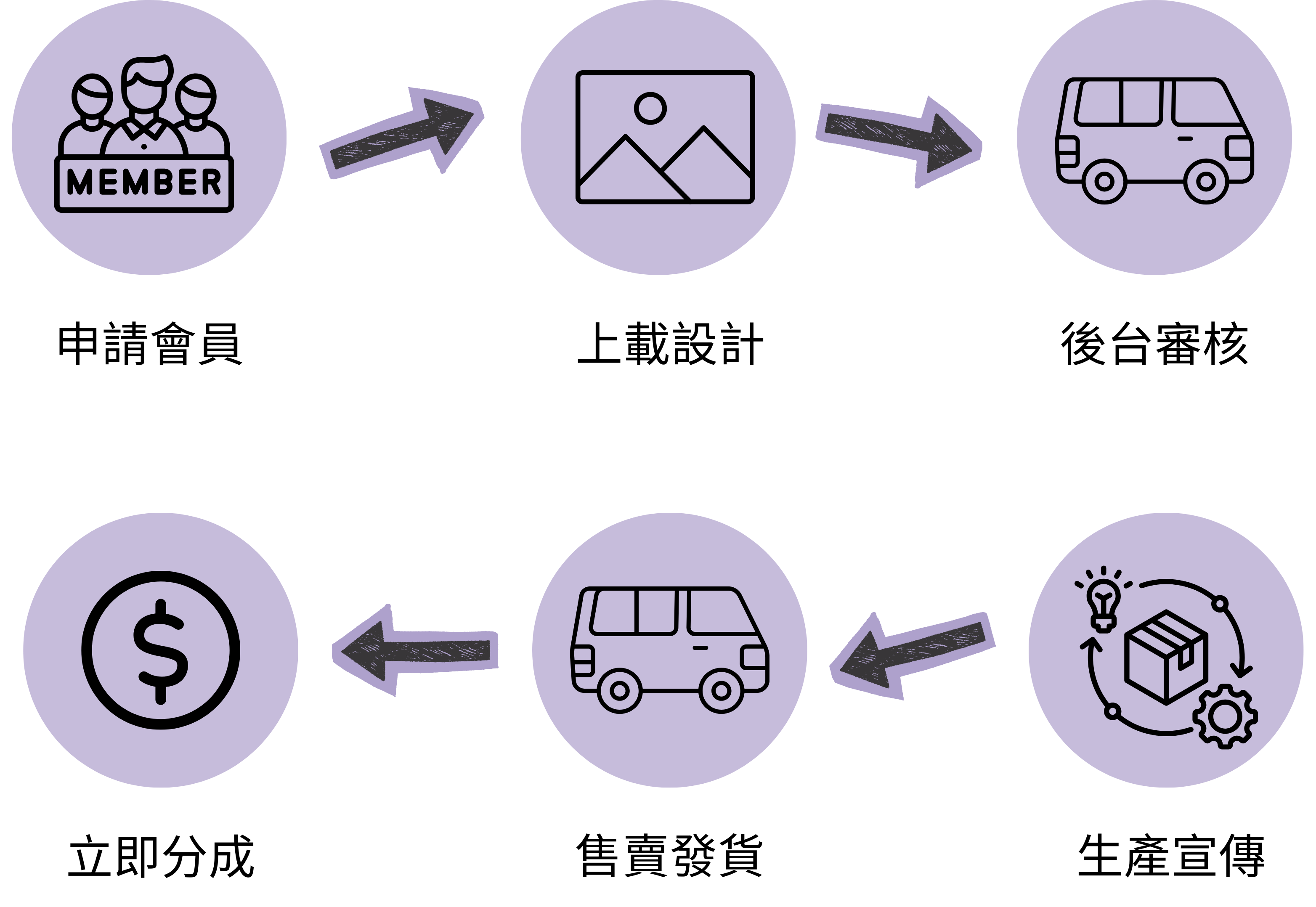 您無需負擔任何開版、生產或庫存成本。只需上傳設計,即可在我們公平透明的平台啟動創業,將靈感轉化為持續性收入。